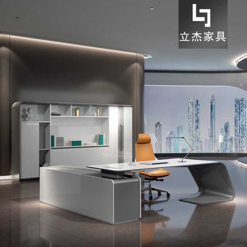 現(xiàn)代班臺(tái)創(chuàng)意老板桌簡約大氣總裁桌