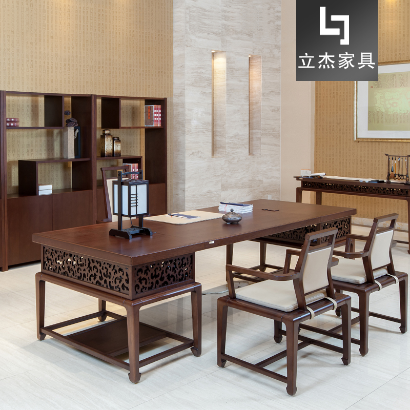 名稱:新中式大班臺老板桌實(shí)木總裁桌 [PED-GJDF]